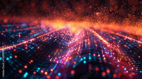 © AlirezA, Fototapeta premium Colorful abstract waves exhibiting light patterns in a digital space at night