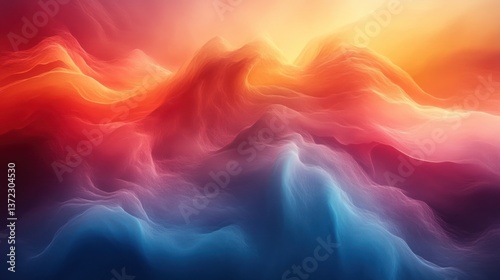 © Desy, Obraz premium Colorful abstract waves, flowing landscape, light background