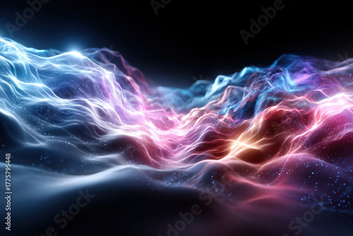 Fototapeta premium Colorful abstract waves flowing through a dark space illuminated by vibrant...