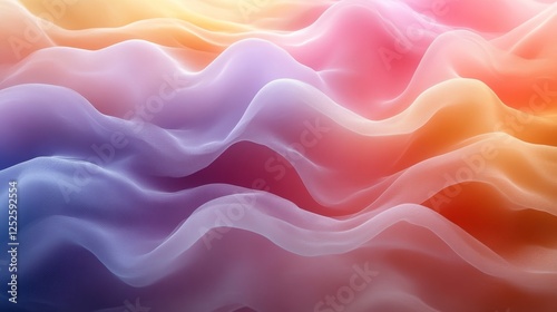 © cac_tus, Obraz premium Colorful abstract waves in soft pastel shades, digital art. modern design and creative expression concept