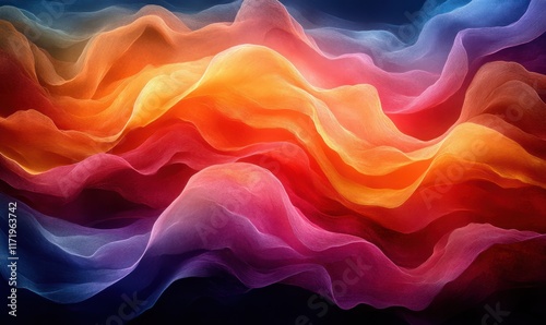 © zong, Obraz premium Colorful Abstract Waves Minimalist Design 3D Render