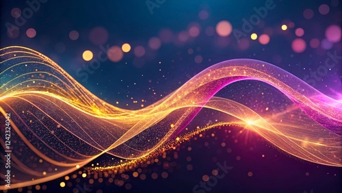 © ole, Obraz premium Colorful Abstract Waves with Light Particles in Dark Background for Creative Projects