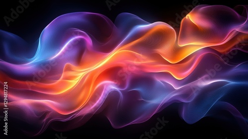 © Prime Stox, Obraz premium Colorful Abstract Wavy Smoke Pattern on Dark Background
