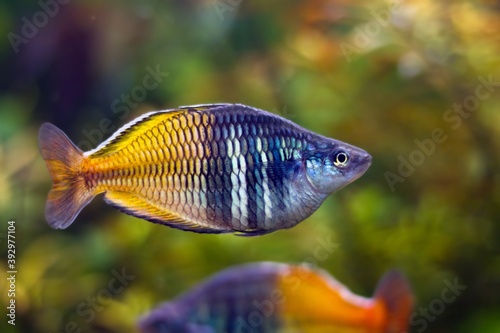 © Valeronio, Fototapeta premium colorful adult male Boeseman's rainbowfish, Ayamaru lakes in Indonesia endemic fish, popular aquarium trade species in freshwater nature aquarium, beauty of nature