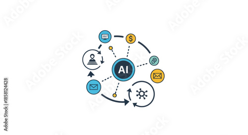 © Jambu, Obraz premium Colorful AI Concept with Business and Technology Icons.