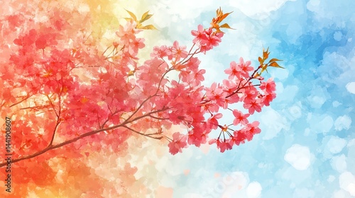 © nattaya, Fototapeta premium Colorful AI spring watercolor
