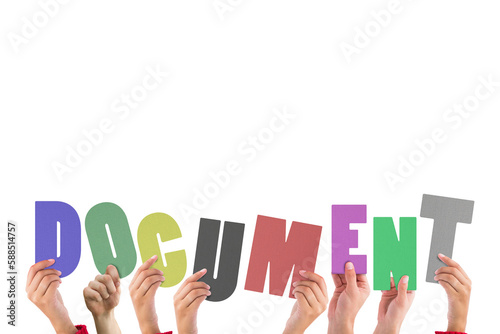 © vectorfusionart, Fototapeta premium Colorful alphabet spelling document held up by people