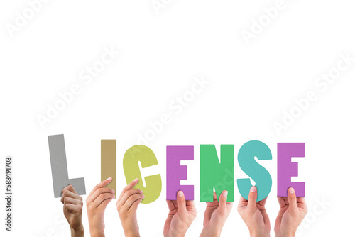 Fototapeta premium Colorful alphabet spelling license held up by people