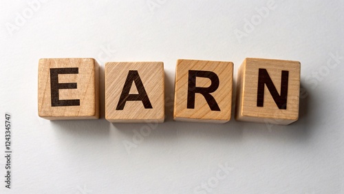 Obraz premium Colorful alphabet wood blocks arranged to spell earn showcasing creativity in...