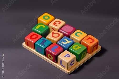 Obraz premium Colorful Alphabet Wooden Toy for Children and Kids - Created with Generative AI Tools