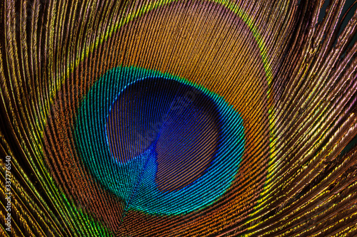 Obraz premium Colorful and Artistic Peacock Feathers. This is a macro photo of an...