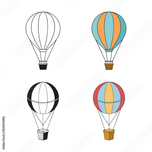 Fototapeta premium "Colorful and Black-and-White Hot Air Balloon Illustrations - Unique Designs...
