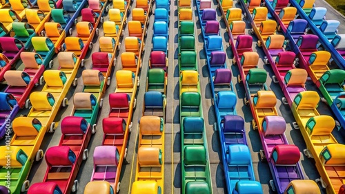 Obraz premium Colorful and empty school bus seats arranged in rows ready for students to embark on their journey