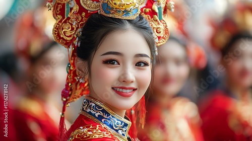 © Jiraphat.N, Fototapeta premium Colorful and Energetic Traditional Chinese Lion Dance Performers Wearing Ornate and Vibrant Costumes During a Cultural Festival or Event