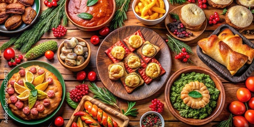Fototapeta premium Colorful And Festive Spread Of Traditional Argentine Christmas Dishes...