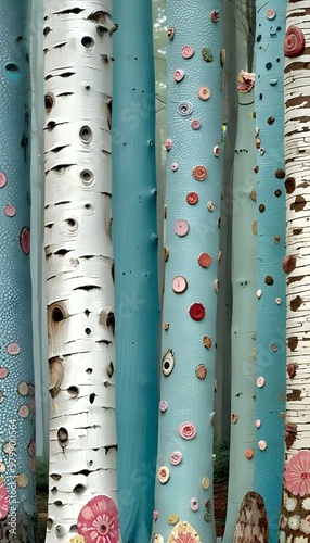 Fototapeta premium Colorful and patterned tree trunks