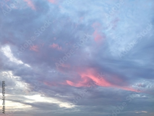 Obraz premium Colorful and peaceful sunset with red-tinted clouds. Natural background Concept