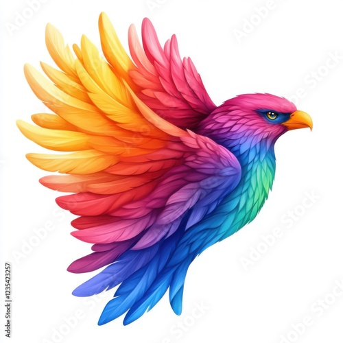 Obraz premium Colorful and Vibrant Abstract Bird with Bright Rainbow Feathers on a White...