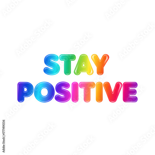 © ALMAMUN, Obraz premium Colorful and vibrant text that says stay positive on a black background