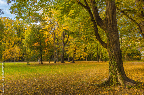 © Aron M - Austria, Naklejka premium Colorful and vivid autumn colors and bright blue sky in the park