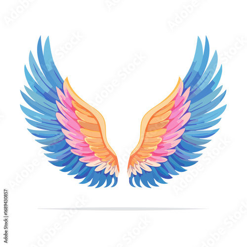 © Pavel, Fototapeta premium Colorful Angel Wings Illustration with Blue, Pink, and Orange Feathers
