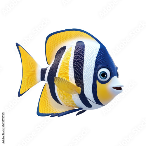 © Maria, Naklejka premium Colorful animated fish swims gracefully in a playful underwater environment showcasing bright colors and lively features on transparent background
