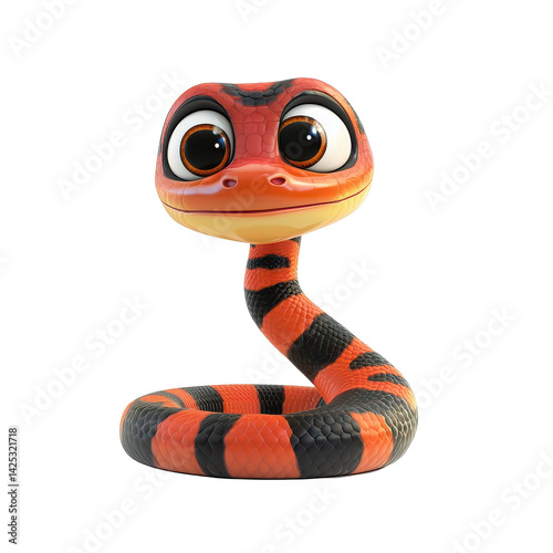© Tanu, Fototapeta premium Colorful animated snake character with large expressive eyes and a friendly appearance in a whimsical style