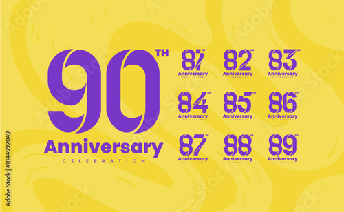 © Artsetya, Fototapeta premium Colorful anniversary celebration logotype set. 81, 82, 83, 84, 85, 86, 87, 88, 89, 90