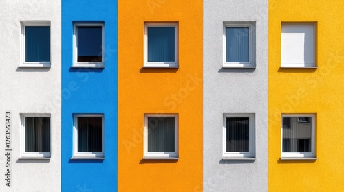 © tugkiara, Fototapeta premium Colorful apartment building facade with multiple windows. Exterior view. Possible use for real estate, architecture, or design projects