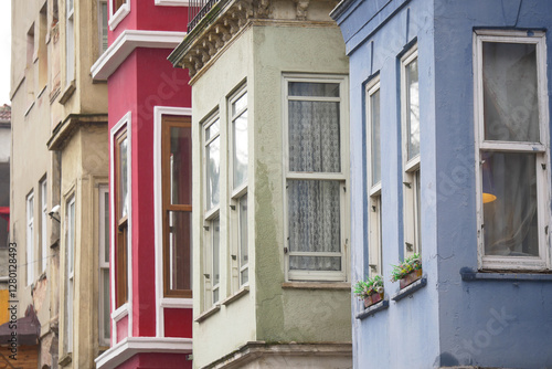 © Towfiqu Barbhuiya , Fototapeta premium Colorful architectural details of homes in a vibrant neighborhood
