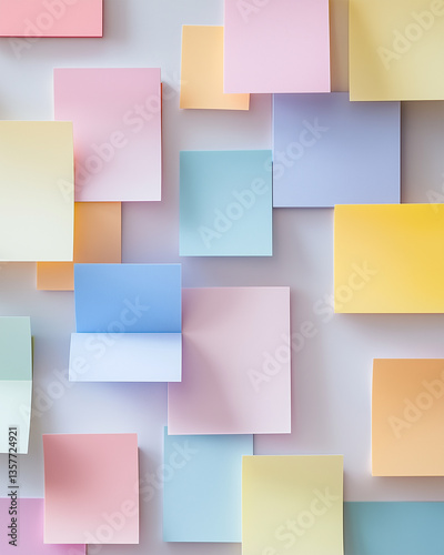Fototapeta premium Colorful arrangement of pastel sticky notes on a light background creating a...