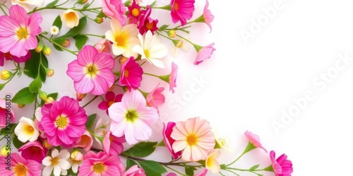 Fototapeta premium Colorful array of blossoming flowers creating a vibrant border on white...