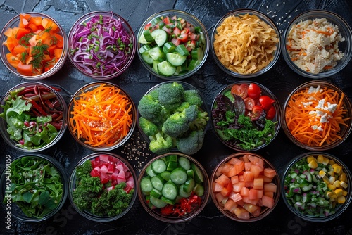 Fototapeta premium Colorful Array of Fresh Vegetables and Salads Prepared for a Healthy Meal in...