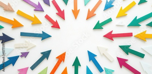 Fototapeta premium Colorful arrows pointing in different directions on a white background,...