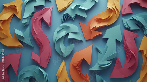 Naklejka premium Colorful Arrows Swirling, Abstract Background, Choice Concept, Business...