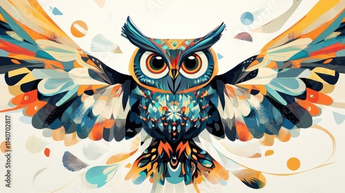 Fototapeta premium Colorful Artful Owl Illustration with Vibrant Feathers and Patterns