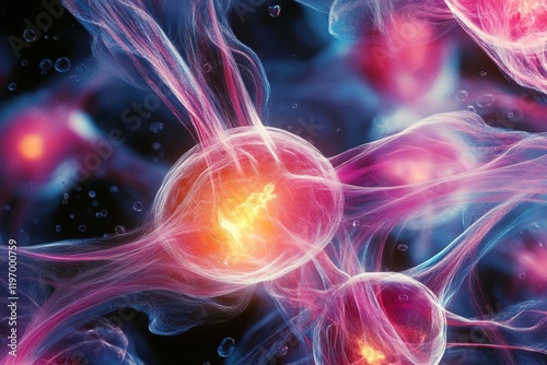 © Ilja, Obraz premium Colorful Artistic Rendering of Interconnected Neural Network, Synapses, and Nerve Cells