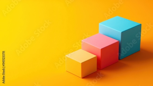 © Alfath, Fototapeta premium Colorful ascending cubes on yellow background.
