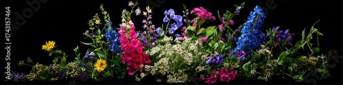 © ternak, Obraz premium Colorful assorted flowers on a dark background nature floral display