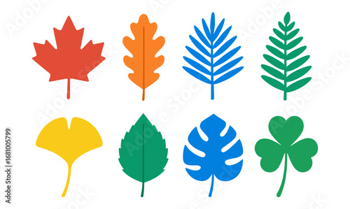 Obraz premium Colorful assorted leaves collection in flat design for nature and botanical themes