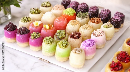 © PalaG, Obraz premium Colorful Assortment of Sufganiyot Delights