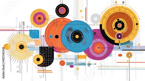 Obraz premium Colorful automation spirals tech networks visualizing workflow optimization...