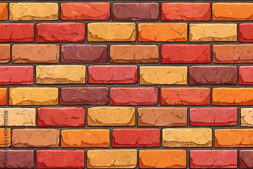 © MdAsadulIslam, Obraz premium Colorful Autumn Brick Wall Texture Seamless Pattern Background Design