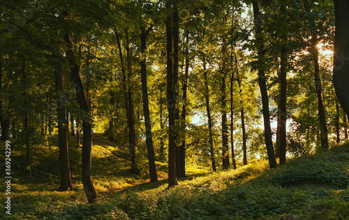 Fototapeta premium Colorful autumn forest on the sunset