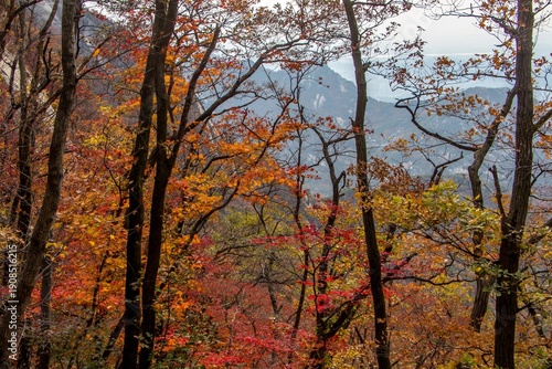 © Thomas, Fototapeta premium Colorful autumn forest with vibrant fall foliage