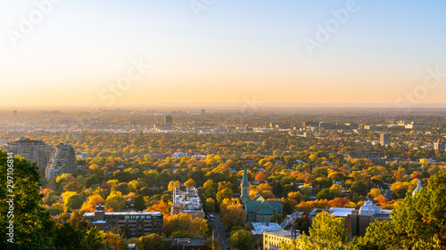 Naklejka premium Colorful autumn in the city just before sunset - North view of the city of Montreal