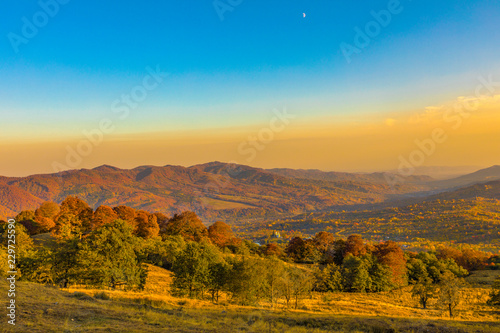 Fototapeta premium Colorful autumn landscape. Carpathian mountains, Romania, Europe.