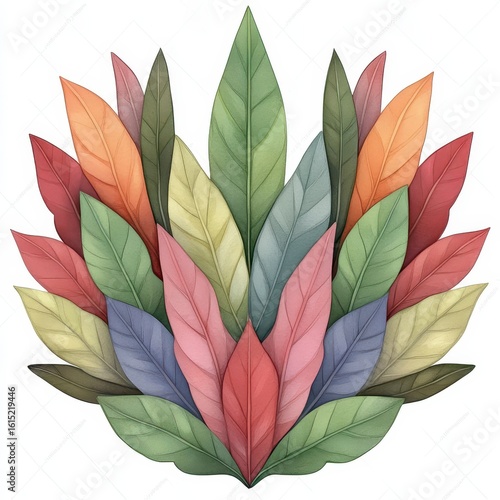 © wesut, Obraz premium Colorful Autumn Leaf Arrangement Watercolor Style Illustration