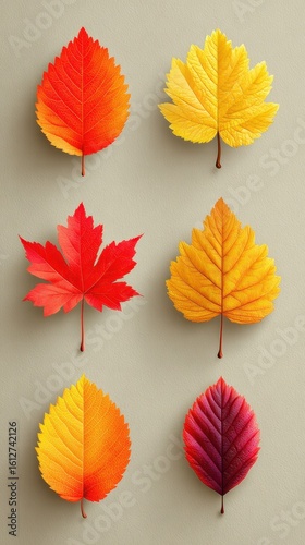 © Georg, Obraz premium Colorful autumn leaves arranged artistically on a neutral background showcasing seasonal beauty and nature's palette