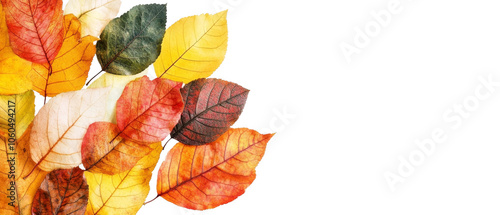 © Prompt2image, Obraz premium Colorful autumn leaves arranged on a transparent background showcasing vibrant hues of red, orange, yellow, and green
